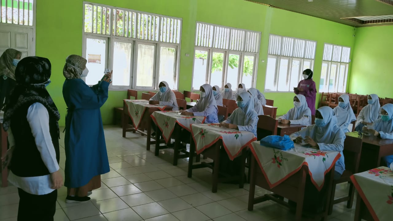 Dinas kesehatan Kecamatan Abung selatan Kalibalangan bekerja sama dengan Madrasah Aliyah Negeri 1 Lampung Utara (MAN 1 LU) untuk menjadikan siswi MAN 1 LU sehat dengan pemberian pil vitamin penambah darah secara gratis oleh Dinas Kesehatan Abung Selatan Kalibalangan. Rabu,(22/9/21). (Tfr/Her)