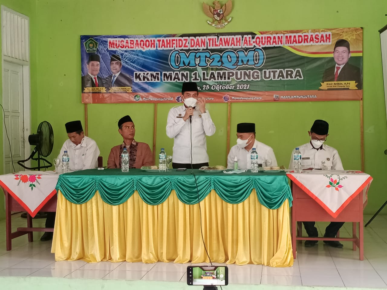 Saat membuka kegiatan tersebut Kepala Kantor Kementerian Agama Kabupaten Lampung Utara, Drs. H. Totong Sunardi, MM. menyampaikan bahwasannya MT2QM ini juga merupakan ajang pencarian bibit Qori-Qoriah, dan hafidz-hafidzoh di Madrasah.
