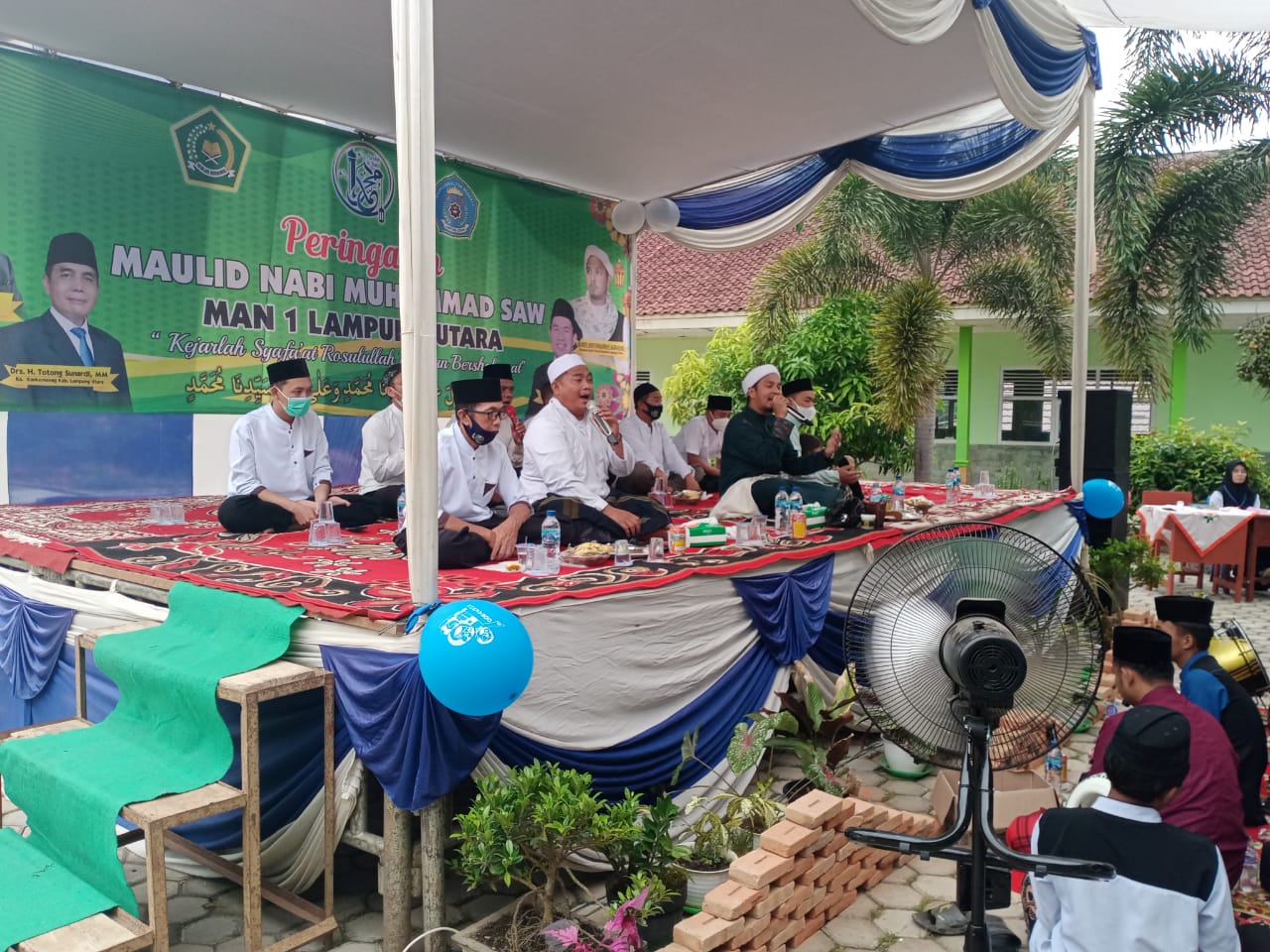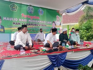 Lampung Utara, MAN 1 (Humas) – Kamis, 28 Oktober 2021. Madrasah Aliyah Negeri (MAN) 1 Lampung Utara melaksanakan kegiatan bershalawat dalam rangka memperingati Maulid Nabi Muhammad SAW. dengan menghadirkan Habib Abdurrahman Al Hadad selaku penceramah. Kamis (28/10)