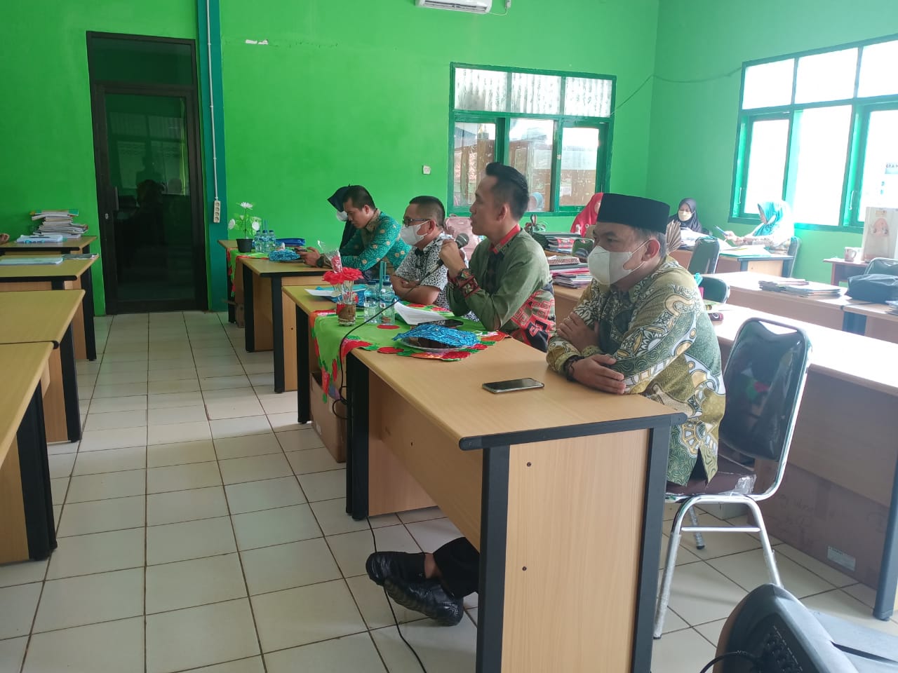 Lampung Utara, MAN 1 (Humas) – Kasi Pendidikan Madrasah (Penmad) Kementrian Agama (Kemenag) Kabupaten Lampung Utara, Herry Setiawan, S.Sos.I.,M.Pd.I, Ketua Pokjawas Kemenag Lampung Utara, Tumadi, M.Pd.I. melakukan monitoring di Madrasah Aliyah Negeri (MAN) 1 Lampung Utara dan di sambut langsung Kepala MAN 1 Lampung Utara, Masir Ibrahim, M.Pd. Dalam pemantauan kali ini terkait Program Induksi Guru Pemula dan pengawasan Kegiatan MGMP, Rabu (9/3/2021).