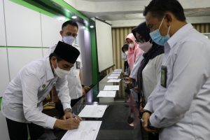 Dalam pantauan humas, penanda tanganan kinerja kepala madrasah dilaksanakan dengan menerapkan protokol kesehatan Covid-19. Serta dihadiri oleh Kepala Seksi Pendidikan Madrasah. (tfr/her)