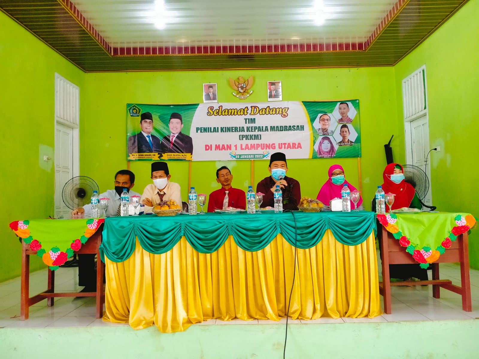 Lampung Utara, MAN 1 (Humas)__Penilaian Kinerja Kepala Madrasah (PKKM) Tahun Pelajaran 2021-2022 di Madrasah Aliyah  dilaksanakan pada Hari Jumat, Tanggal 28 Januari 2022. PKKM kali ini dihadiri oleh pengawas MAN 1 LU yaitu Ibu Marita Sari, S.Pd.,M.Pd yang juga menjadi Tim Penilai 1 pada pelakasanaan PKKM di Madrasah Aliyah Negeri 1 Lampung Utara. Tim penilai kedua adalah Bapak Muhidin, S.Ag., Bapak Ruhimat, M.Pd.I.,  dan Bapak Caya Hadi Wijaya, S.Pd.I.