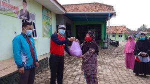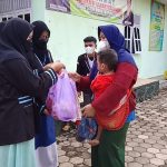 (Waka kesiswaan saat memberikan paket sembako kewarga )