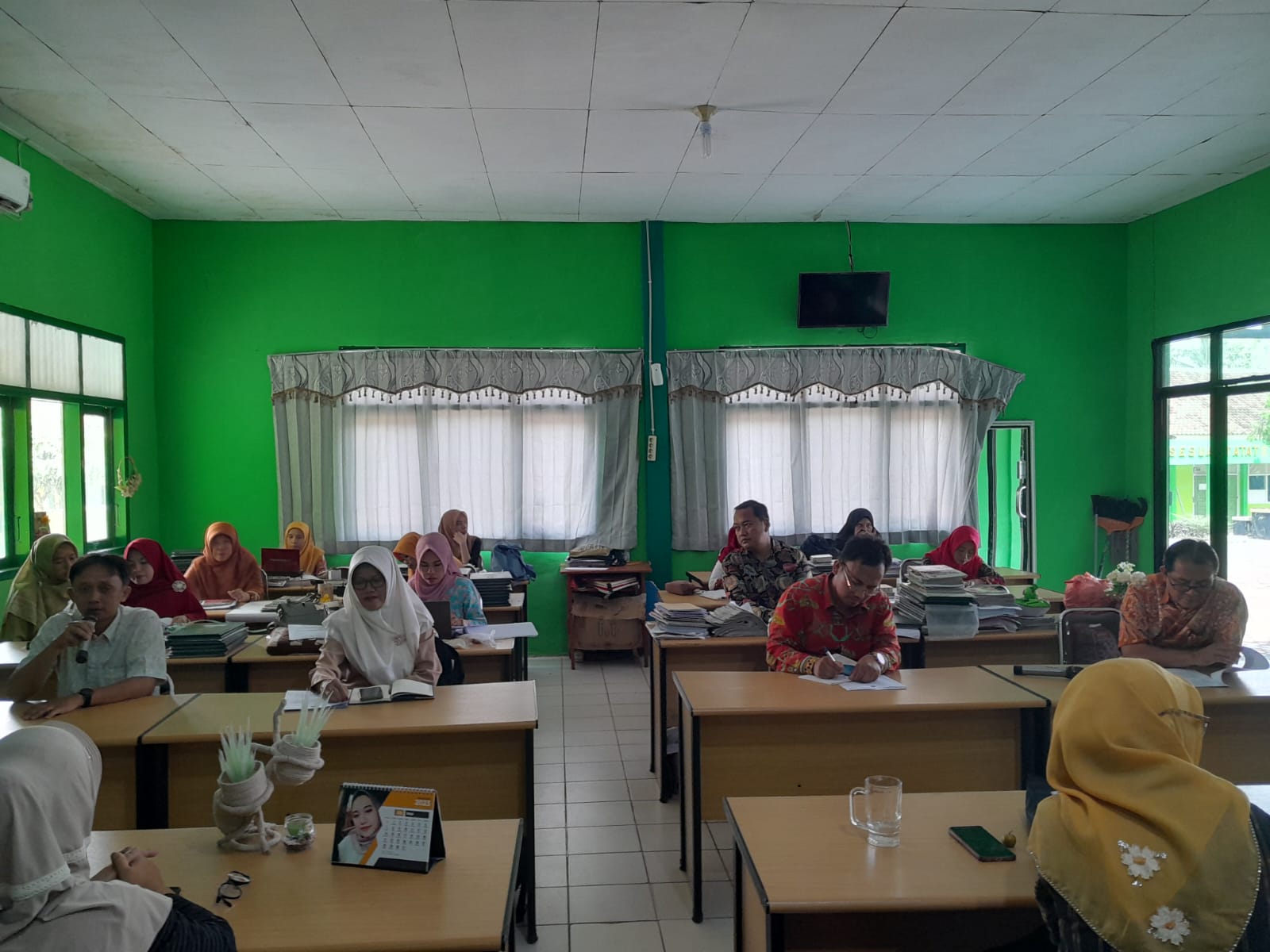 Pada rapat tersebut, tampak hadir sejumlah guru dan tenaga kependidikan, di antaranya ialah Kaur TU Soni Putra, S.Pd. Waka Kurikulum, Yeni Agustina, S.Pd., Waka Kesiswaan Drs. Kausar, M.Pd.I., Waka Humas Taufiqur Rahman, M.Pd.I. para wali kelas dan guru bidang studi serta staf TU MAN 1 Lampung Utara.