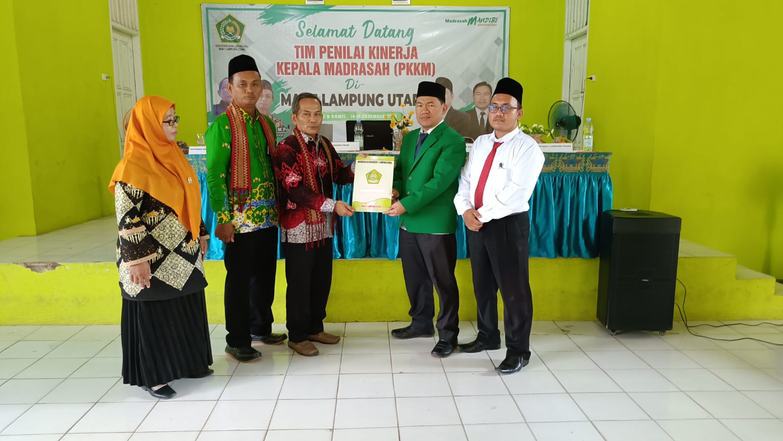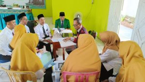 Lampung Utara, MAN 1 (Humas)–Pelaksanaan PKKM (Penilaian Kinerja Kepala Madrasah) Tahunan di Madrasah Aliyah Negeri 1 Lampung Utara 2023-2024 merupakan agenda tahunan yang diselenggarakan oleh Kantor Kementrian Agama Provinsi Lampung sebagai salah satu upaya untuk evaluasi kinerja di Lingkungan Kemenag kabupaten. Pengawas Madrasah Kementerian Agama Kabupaten Lampung Utara yakni ibu Marita, M.Pd., bersama TIM penilai PKKM diantaranya Drs. Helmi, M.Pd., Dr. Suwanto, M.Pd.I., melaksanakan PKKM (14/12/2023) di Ruang Aula MAN 1 Lampung Utara. Kegiatan ini dilaksanakan sebagai upaya pengumpulan, pengolahan, analisis, dan interpretasi data terkait kinerja Kepala Madrasah Aliyah Negeri (MAN) 1 Lampung Utara dalam satu tahun terakhir. Dalam PKKM ini Kepala Madrasah Masir Ibrahim, M.Pd didampingi wakil kepala madrasah dan koordinator setiap komponen penilaian.