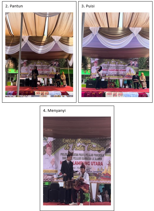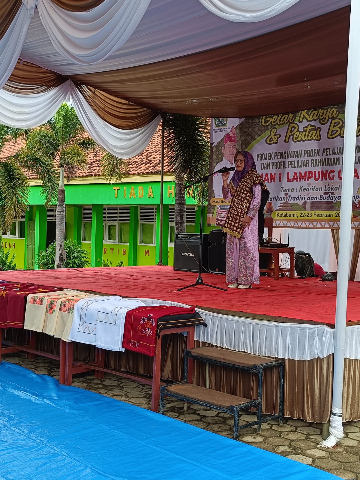 Lampung Utara, MAN 1 (Humas)— MAN 1 Lampung yang dipimpin oleh Masir Ibrahim, S.Pd., M.Pd. menggelar Tampilan Karya bertemakan Kearifan Lokal Implementasi Projek Penguatan Profil Pelajar Pancasila dan Profil Pelajar Rahmatan Lil Alamin (P5-P2RA). Kamis (22/2).