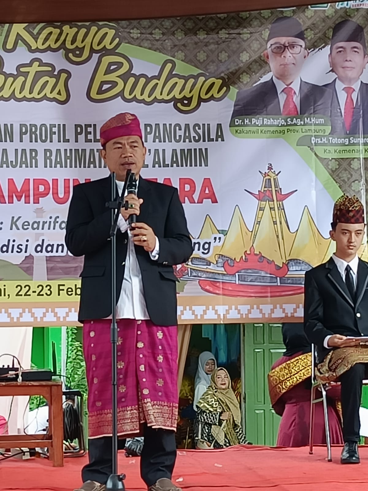 Turut hadir menyaksikan kegiatan P5-P2RA, Kepala Kantor Kementerian Agama Kabupaten Lampung Utara, Totong dalam sambutannya memberikan apresiasi berkenaan dengan kegiatan ini untuk bersama-sama menyaksikan apa yang akan ditampilkan pada hari ini. Tutur Totong.