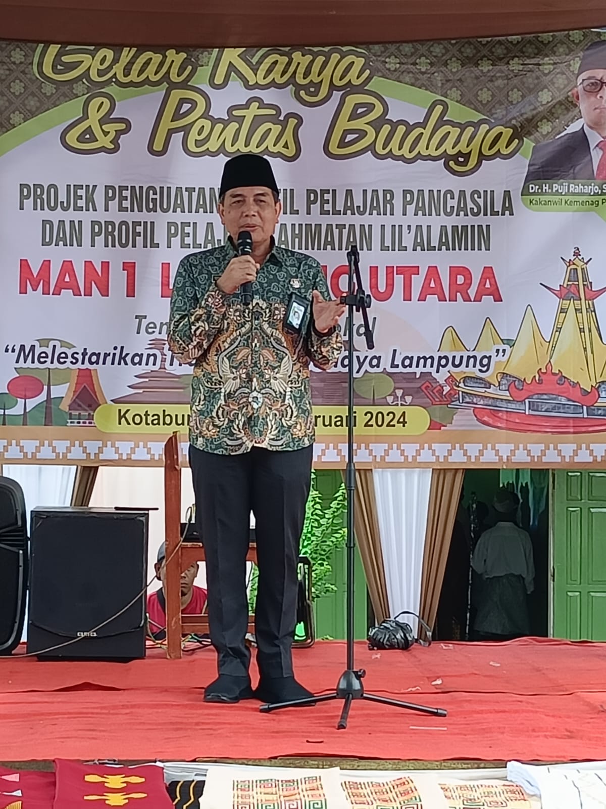 Gelaran Karya P5-P2RA dihadiri dan dibuka langsung oleh Kepala Kantor Kementerian Agama Kabupaten Lampung Utara, H. Totong Surandi, M.M. diiringi oleh Kasi Penmad, Herry Setiawan, S.Sos.I., M.Pd., Pengawas Pembina, Maritasari, M.Pd, Kepala MAN 1 Lampung Utara, Kepala Komite, Kaur TU, Tenaga Pendidik, Seluruh Staf Karyawan dan Peserta Didik MAN 1 Lampung Utara.