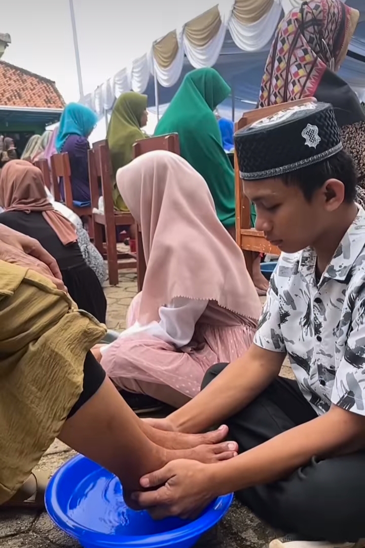 Tangis haru pecah, saat di penghujung acara masing-masing peserta didik kelas XII diarahkan untuk menghampiri orang tua masing-masing dengan membasuh kaki, meminta maaf atas segala kesalahan yang diperbuat seraya memohon do’a restu demi mengangkat derajat keluarga.