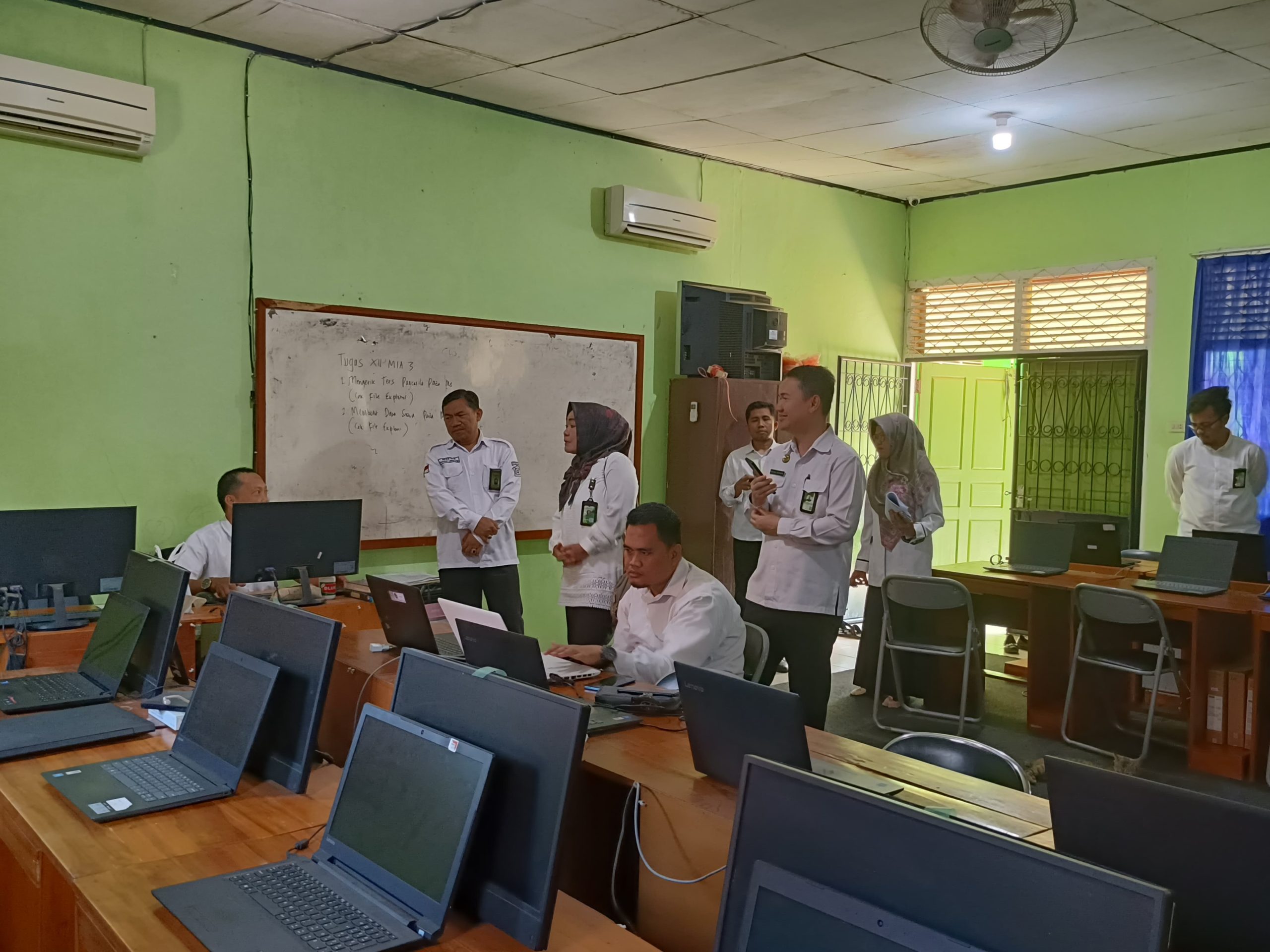 Lampung Utara, MAN 1 (Humas). Tim Kantor Wilayah Kementerian Agama Provinsi Lampung mengunjungi MAN 1 Lampung Utara dalam rangka monitoring pelaksanaan Asesmen Madrasah (AM) tahun ajaran 2023/2024. Kedatangan mereka disambut langsung oleh Kepala MAN 1 Lampung Utara, Masir Ibrahim, M.Pd. Selasa (19/3).
