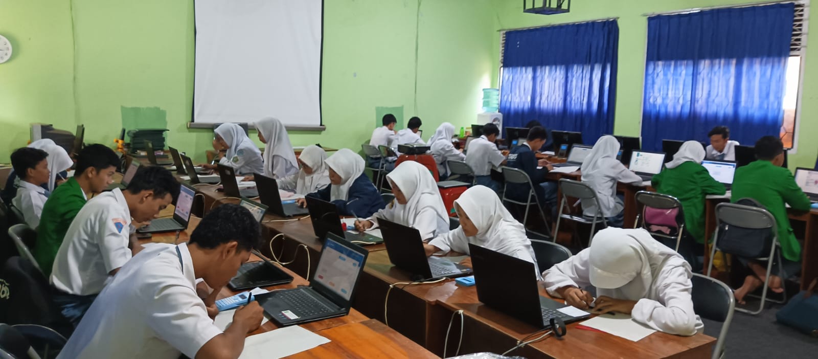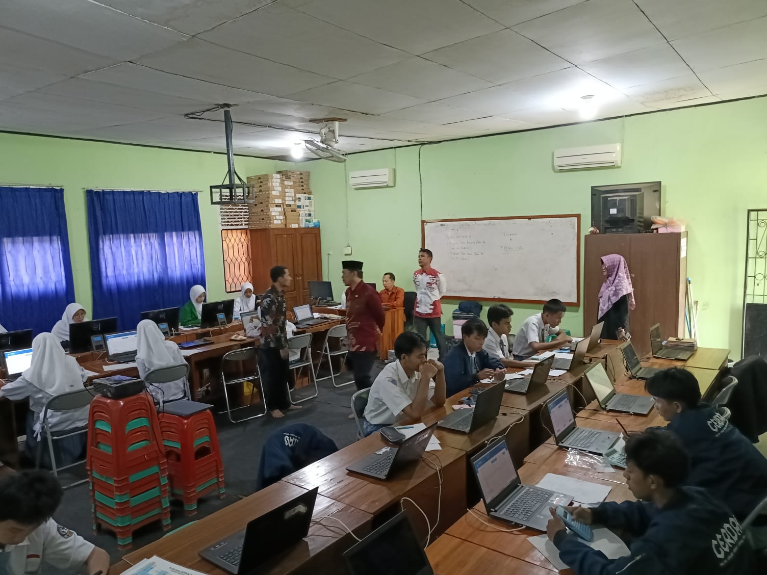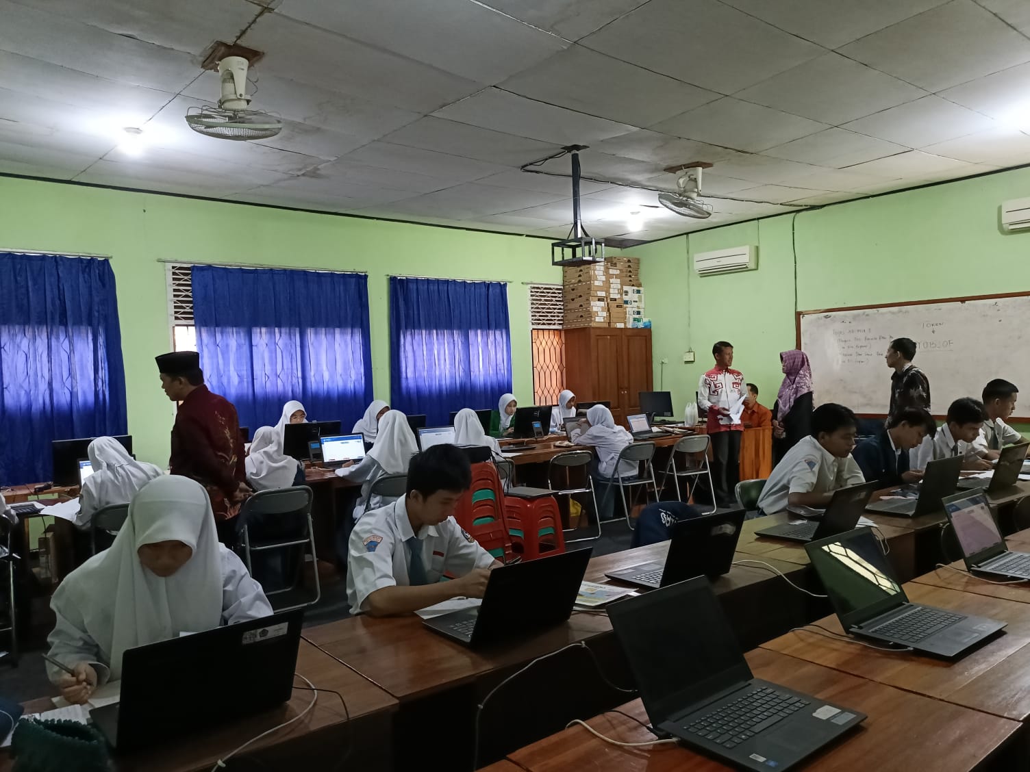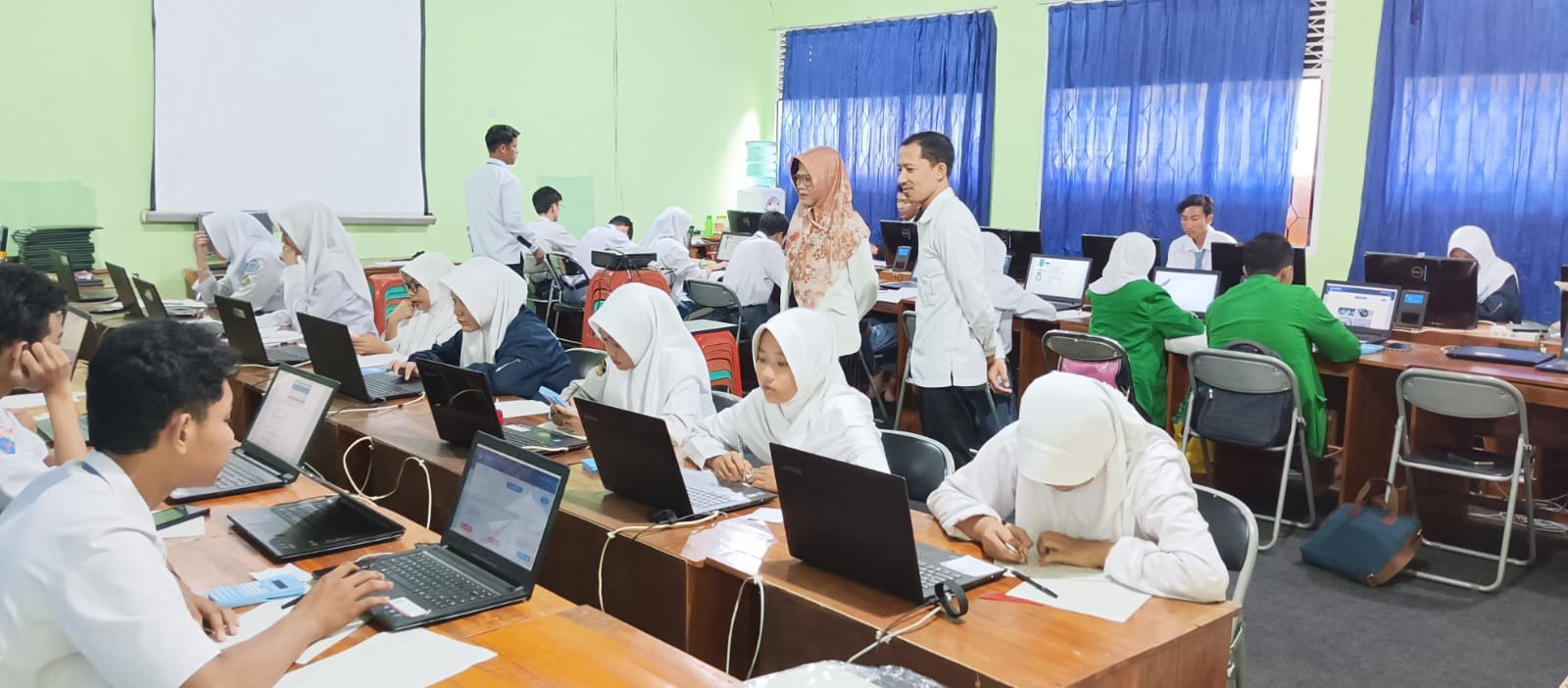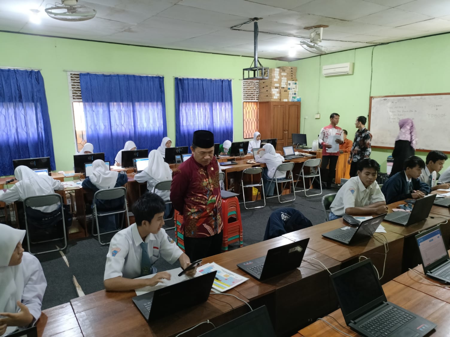 Turut hadir dalam Pelaksanaan OSK sekaligus pengawasan langsung oleh Kepala Madrasah, Masir Ibrahim, S.Pd., M.Pd yang didampingi oleh Waka. kurikulum Yeni Agustina, S.Pd dan Pengawas yang bertugas. Pelaksanaan OSK berjalan dengan lancar bertempat di Laboratorium Komputer MAN 1 Lampung Utara yang diselenggarakan semi daring.