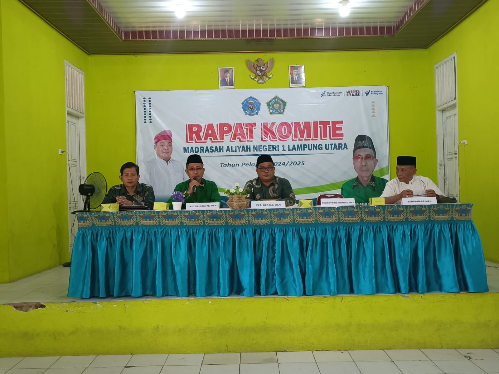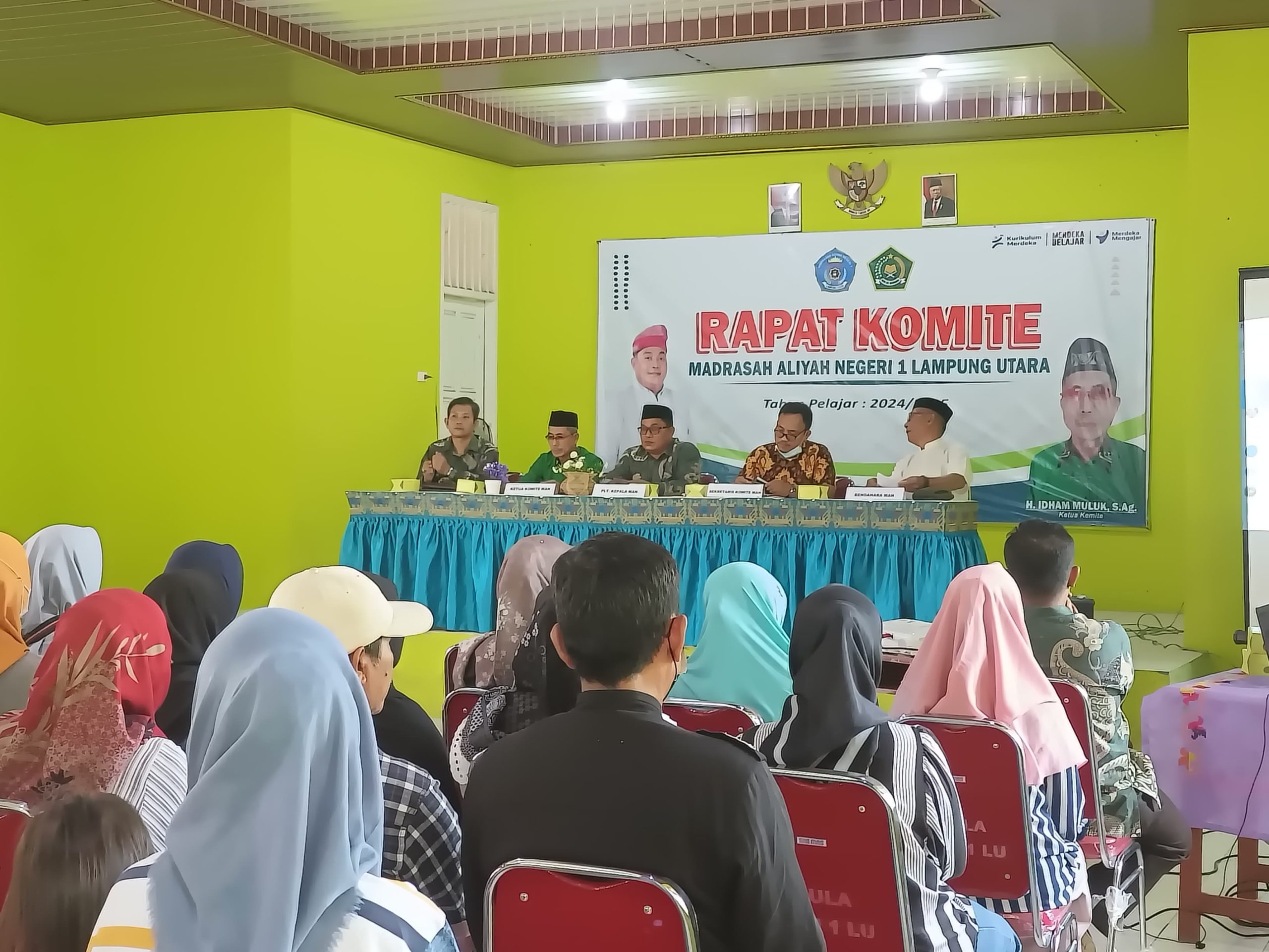 Rapat yang dipimpin oleh ketua komite H. Idham Muluk, S.Ag dan dihadiri seluruh pengurus komite serta wali murid MAN 1 Lampung Utara adalah dari rasa tanggung jawab dan keikutsertaan dalam menangani beberapa masalah madarasah yang terkait dengan program yang akan dikembangkan untuk pengembangan madrasah lain yang sudah lebih maju. Ucap Idham