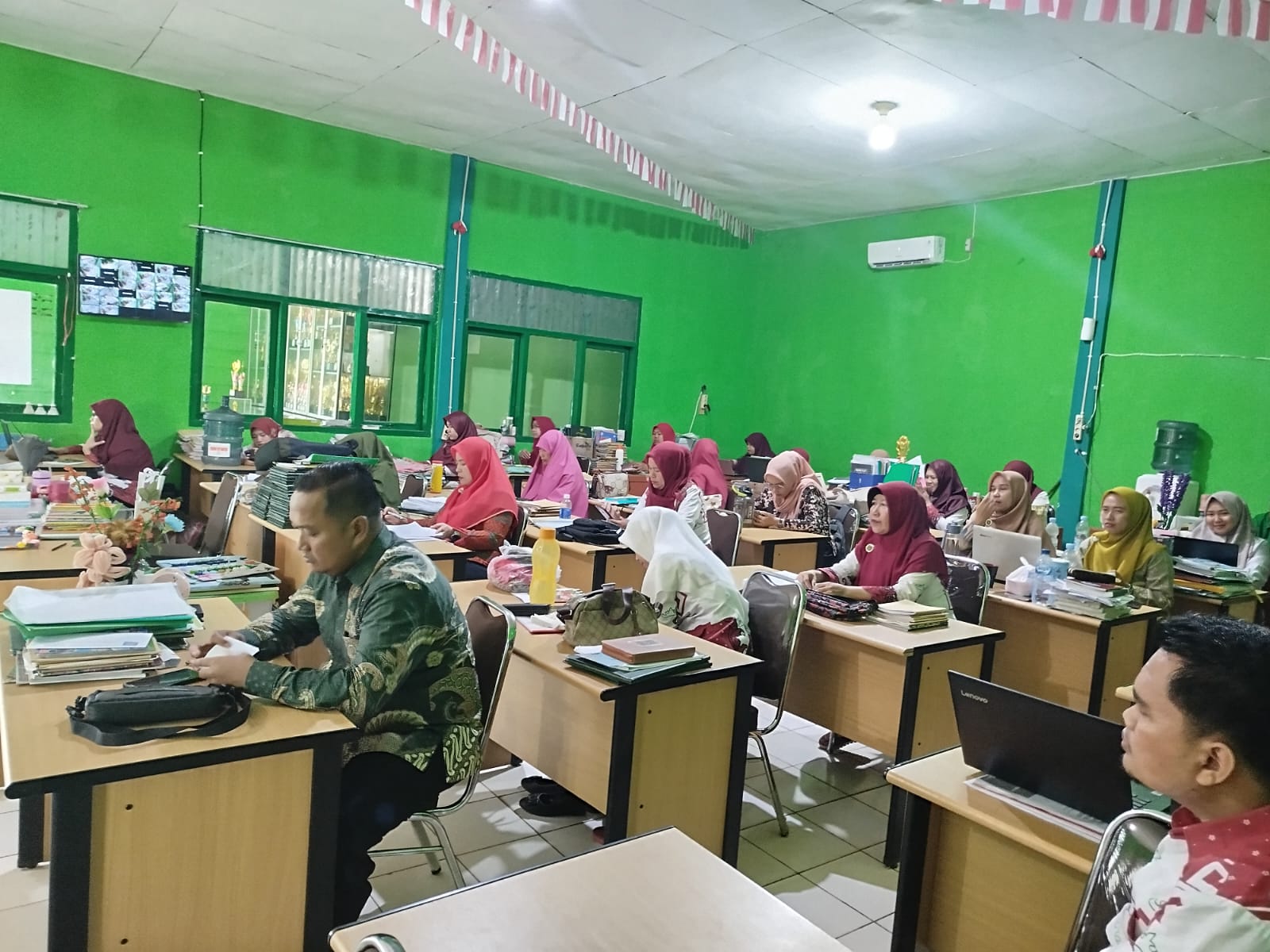 Lampung Utara, MAN 1 (Humas) – Madrasah Aliyah Negeri (MAN) 1 Lampung Utara menggelar agenda rutin Rapat Bulanan. Rapat rutin yang dilaksanakan setiap bulannya dipimpin langsung oleh Plt. Kepala MAN 1 Lampung Utara, M. Nasir, S.Pd.I dan dampingi oleh Kaur TU, Soni Putra, S.Pd. Waka Kurikulum, Yeni Agustina, S.Pd., Waka Humas, Taufiqur Rahman, M.Pd.I. Waka Sarpras, Ekadron, SE. MM., Tenaga Pendidik dan seluruh Staf Karyawan MAN 1 Lampung Utara di Ruang Guru. Rabu (6/11).