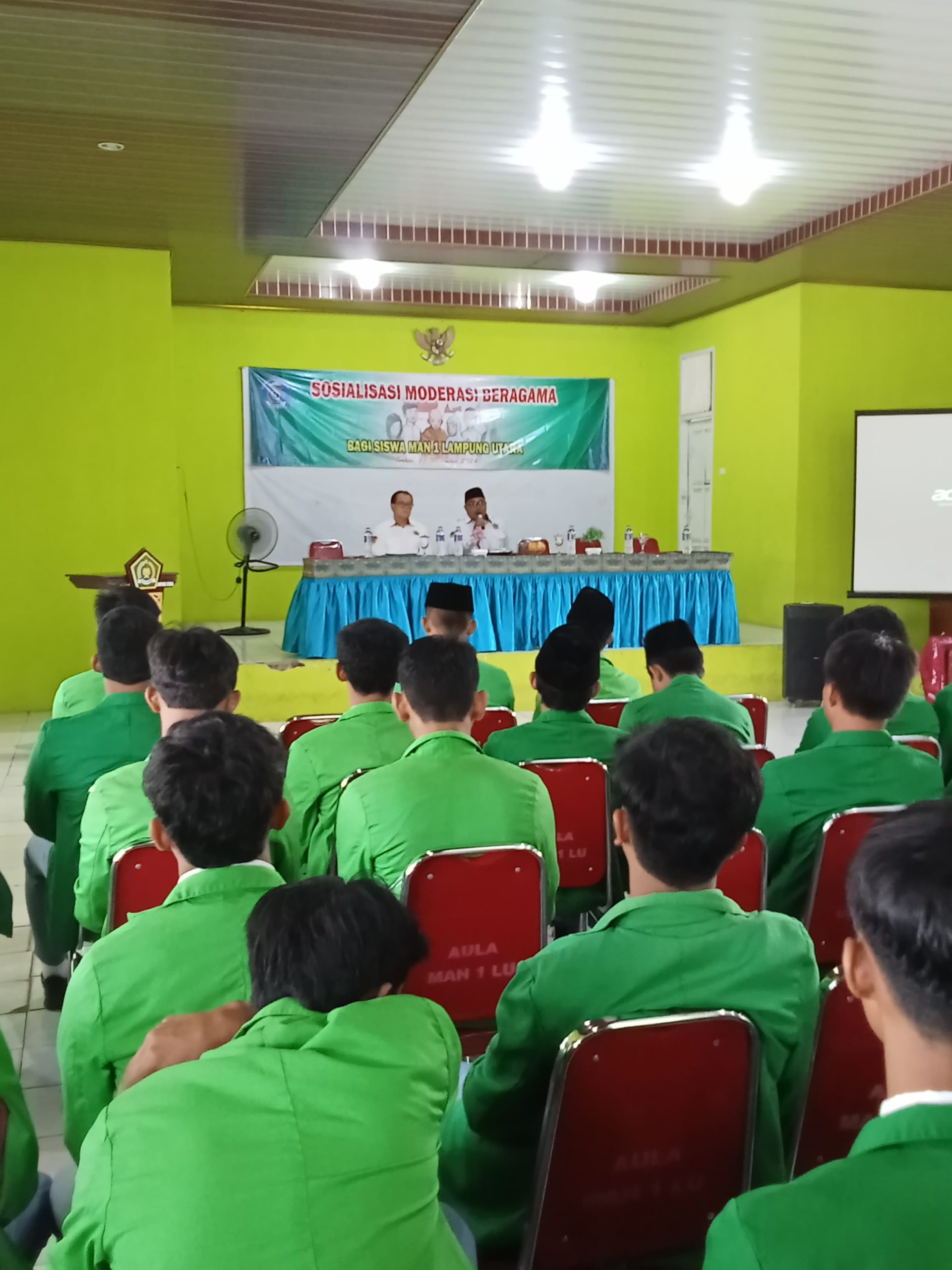 Lampung Utara , MAN 1 (Humas) –Madrasah Aliyah Negeri (MAN) 1 Lampung Utara menggelar kegiatan sosialisasi bertajuk “Generasi Cerdas, Bijak, dan Berkarakter” yang diselenggarakan di Aula Madrasah yang direncakan 3 (tiga) hari yakni pada tanggal 23, 25 dan 26 November 2024,. Kegitaan sosialisasi ini bertujuan untuk memberikan pemahaman kepada siswa tentang bahaya bullying, dampak negatif penggunaan gadget secara berlebihan, serta pentingnya moderasi beragama dalam kehidupan sehari-hari. (26/11)