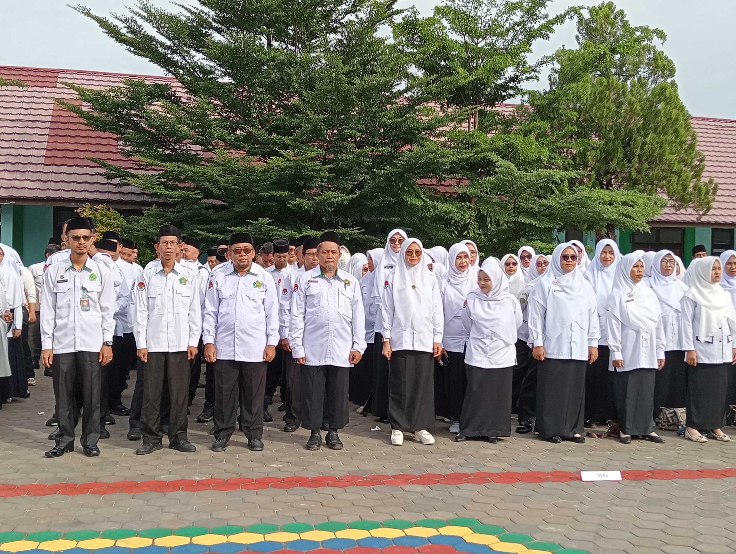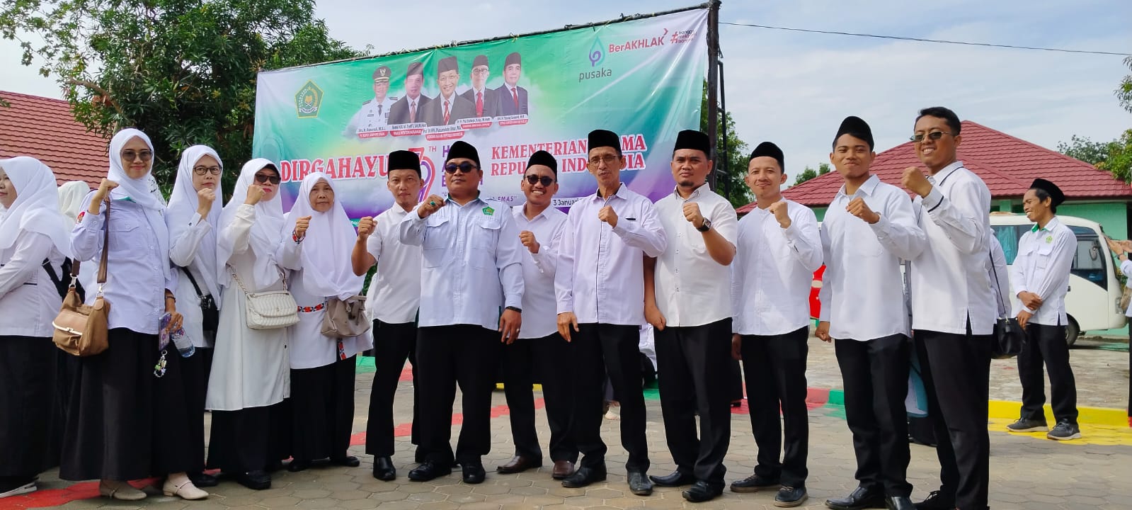 Lampung Utara, MAN 1 (Humas)-Plt. Kepala MAN 1 Lampung Utara, M. Nasir, S.Pd.I bersama Kaur TU, Waka, Guru dan Staff mengikuti upacara memperingati Hari Amal Bakti (HAB) Kementerian Agama yang ke-79 yang digelar di halaman MTs Negeri 1 Lampung Utara. Jumat (03/01).