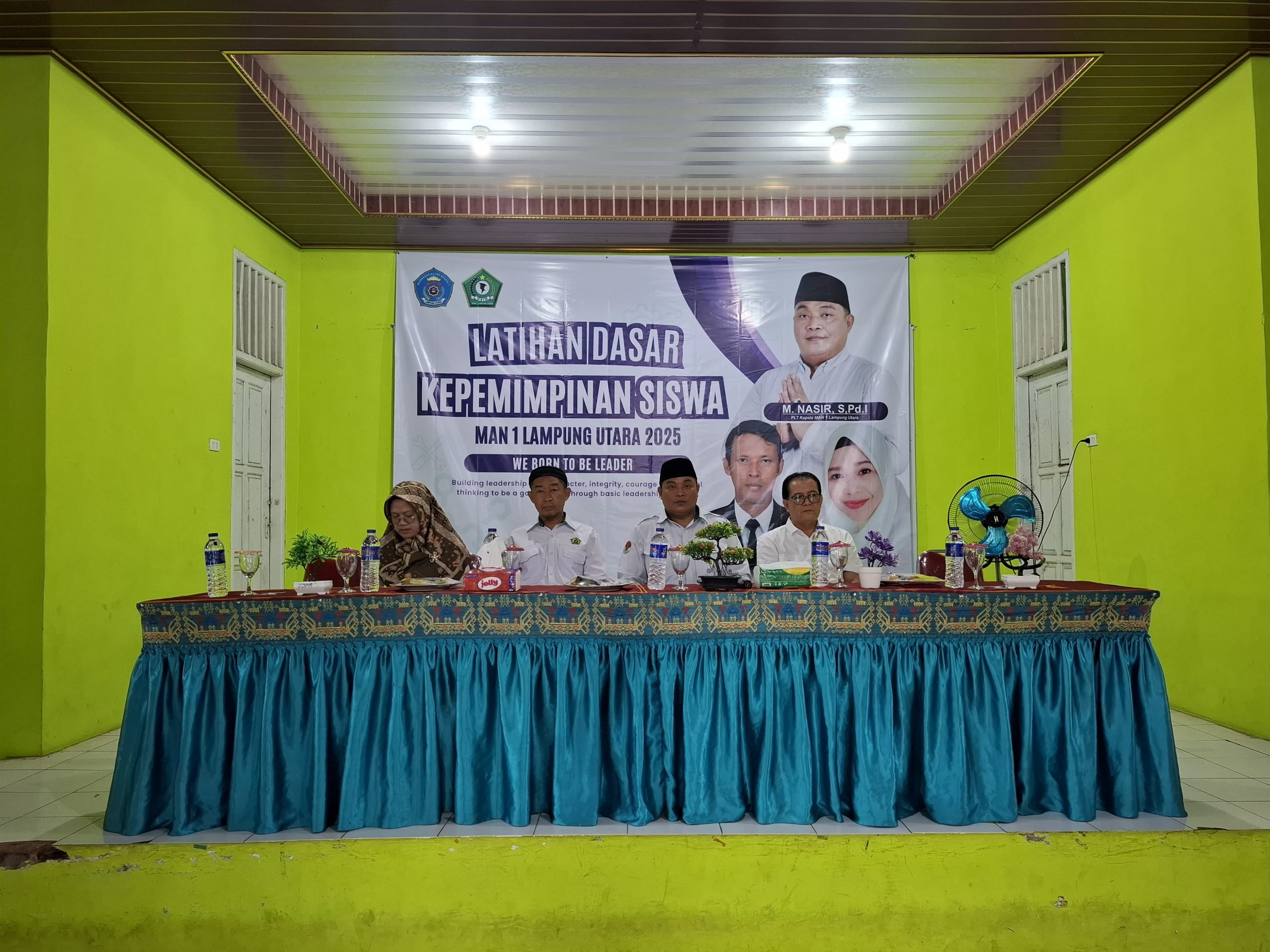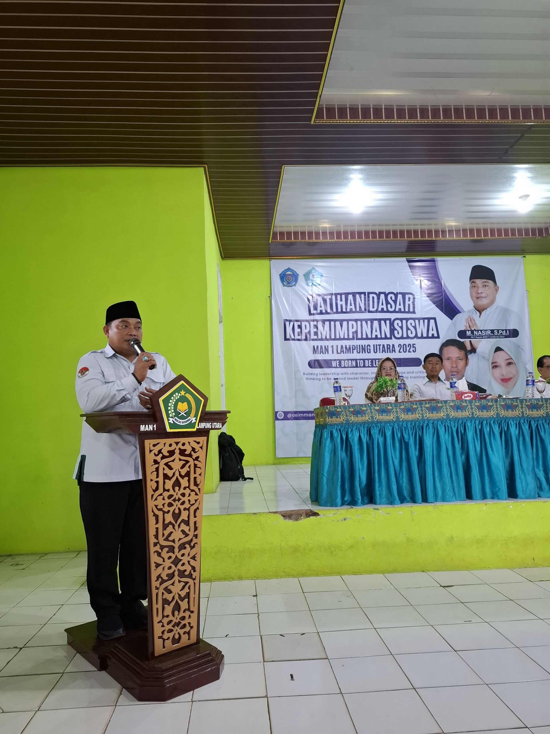 Pada tanggal 21 – 23 Januari 2025, Madrasah Aliyah Negeri (MAN) 1 Lampung Utara mengadakan Latihan Dasar Kepemimpinan Siswa (LDKS) bagi Pengurus organisasi yang berada di MAN 1 Lampung Utara. Tampak hadir dalam kegiatan, Plt. Kepala MAN 1 Lampung Utara, M. Nasir, S.Pd.I, Waka Kesiswaan, Drs. Kausar, M.Pd.I., Waka Kurikulum, Yeni Agustina,S.Pd., Waka Humas, Taufiqur Rahman, M.Pd.I., Waka Sapras, Ekadron, SE.M.M., Pembina OSIS, Dedi Atmaja, S.Pd. dan Fitri Sepriantina, S.Ag., serta seluruh Pembina Organisasi MAN 1 Lampung Utara.
