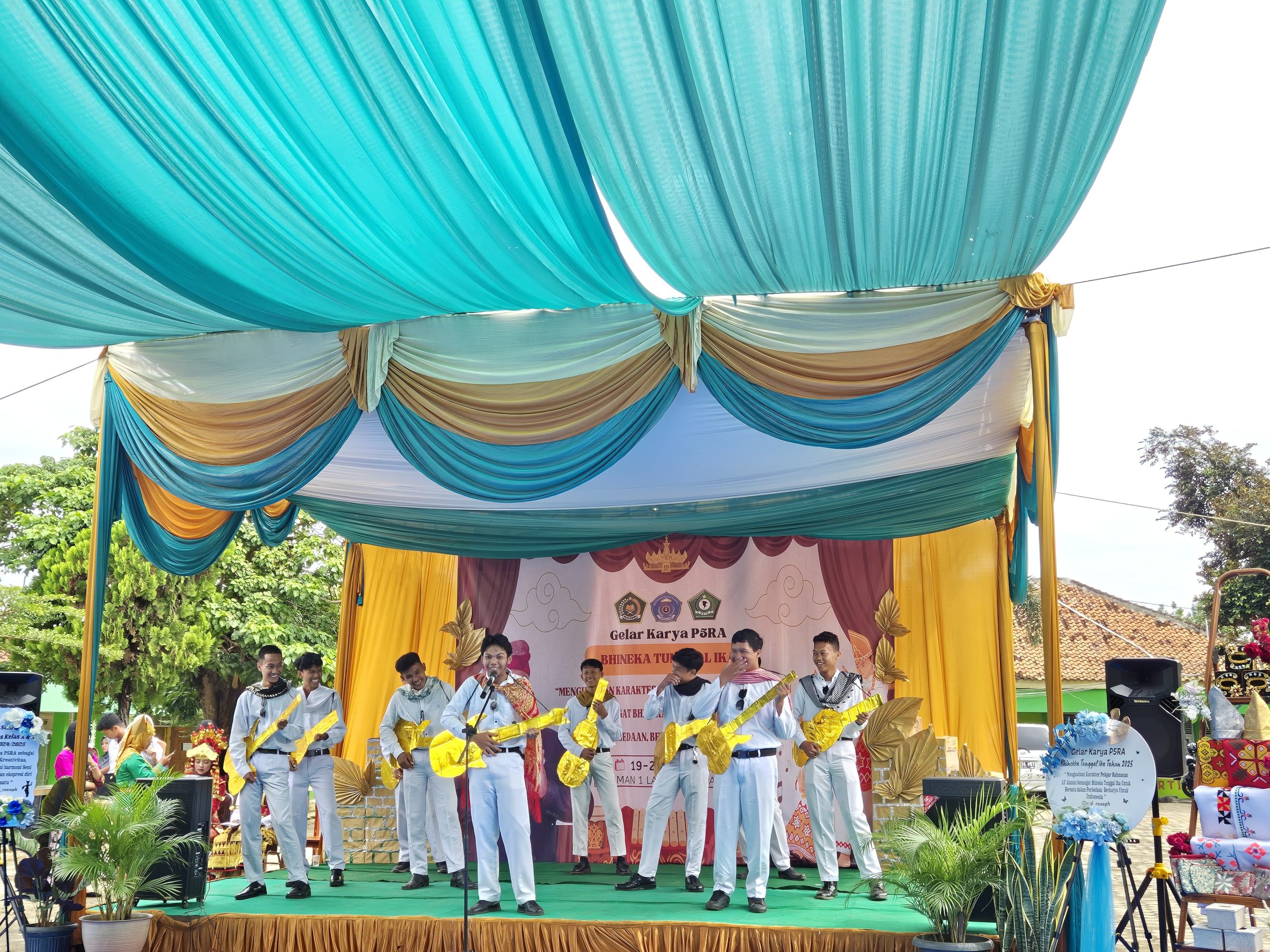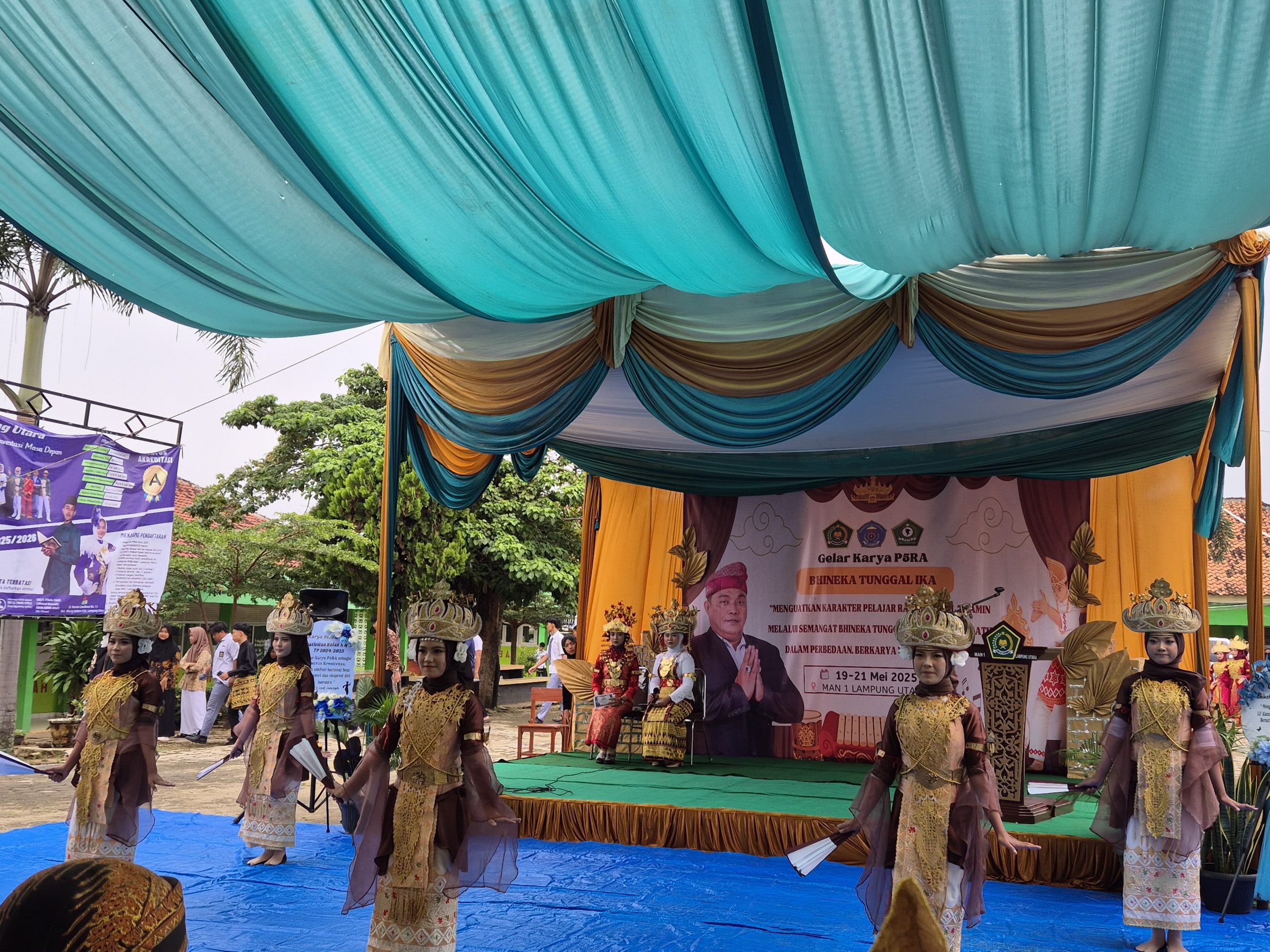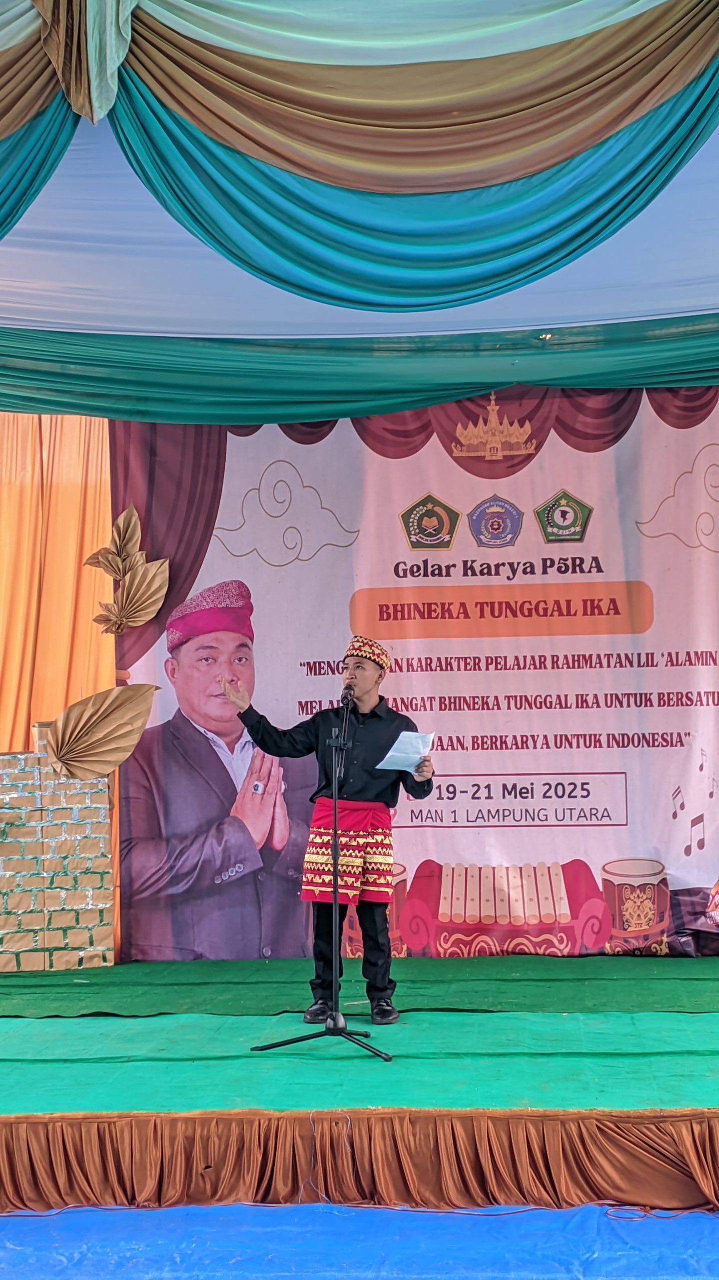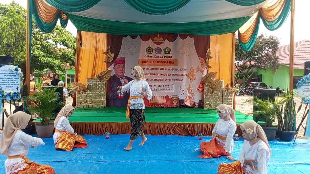 Lampung Utara, MAN 1 (Humas)— Madrasah Aliyah Negeri (MAN) 1 Lampung Utara menggelar acara Gelar Karya P5RA (Projek Penguatan Profil Pelajar Pancasila Rahmatan Lili’aliin) dengan tema Bhineka Tunggal dan judul “Menguatkan Karakter Pelajar Rahmatan Lil ‘Alamin melalui Semangat Bhineka Tunggal Ika untuk Bersatu dalam Perbedaan, Berkarya untuk Indonesia”. Acara ini menampilkan berbagai karya seni dan kreativitas siswa yang merayakan keberagaman dan kesatuan. (Senin, 19/05)