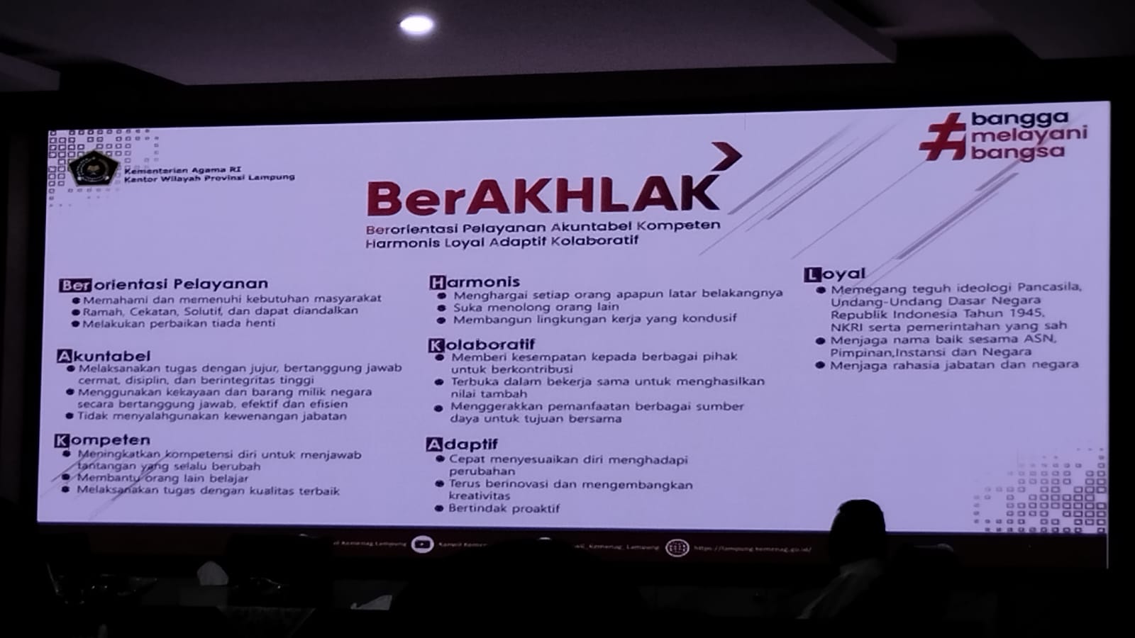Rakor ini dibuka langsung oleh Pelaksana Tugas (Plt) Kepala Kanwil Kemenag Provinsi Lampung, H. Erwinto, didampingi Kepala Bagian Tata Usaha, Drs. H. Marwansyah, dan Kepala Bidang Pendidikan Madrasah (Penmad), H. Ahamd Rifa’i, S.E., M.M. Dalam sambutannya, ia memaparkan tiga strategi program madrasah ke depan, yakni pemenuhan sarana dan prasarana, penguatan pelaksanaan kurikulum cinta, serta peningkatan kedisiplinan di lingkuan madrasah. Ucap Erwinto.