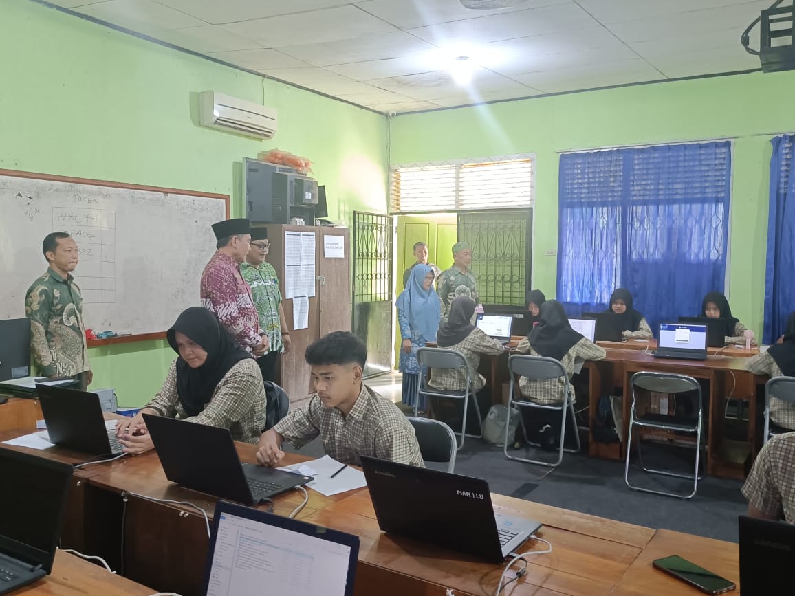 Lampung Utara, (Humas) — Kepala Kantor Kementerian Agama (Kakanmenag) Kabupaten Lampung Utara, Drs. H. Totong Sunardi, MM melakukan monitoring pelaksanaan Asesmen Nasional Berbasis Komputer (ANBK) di Madrasah Aliyah Negeri (MAN) 1 Lampung Utara, Kamis (7/8/2025).