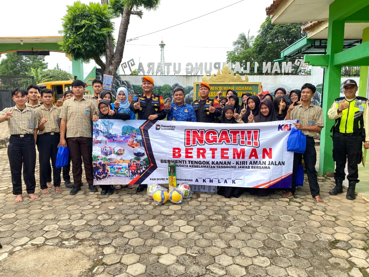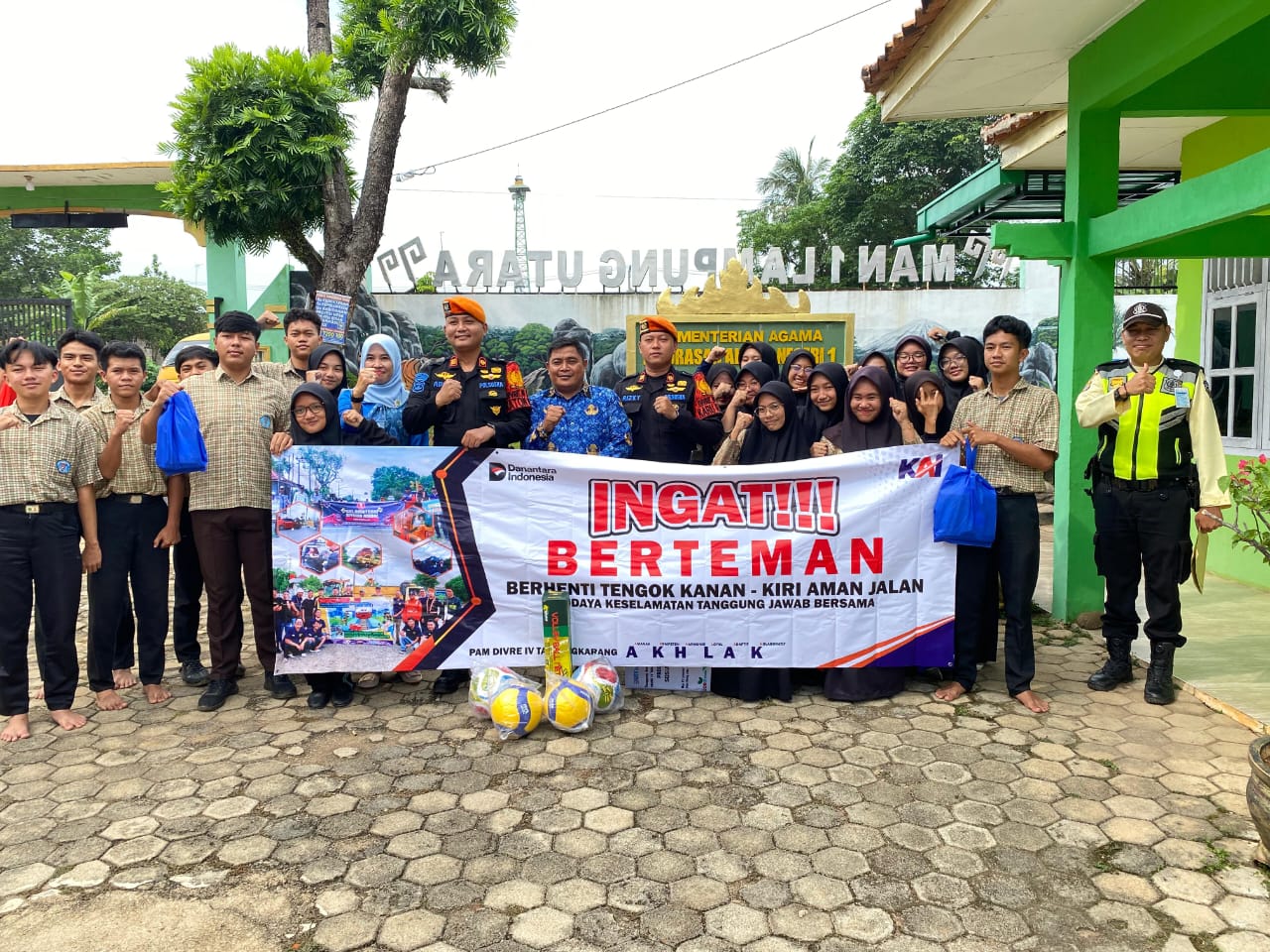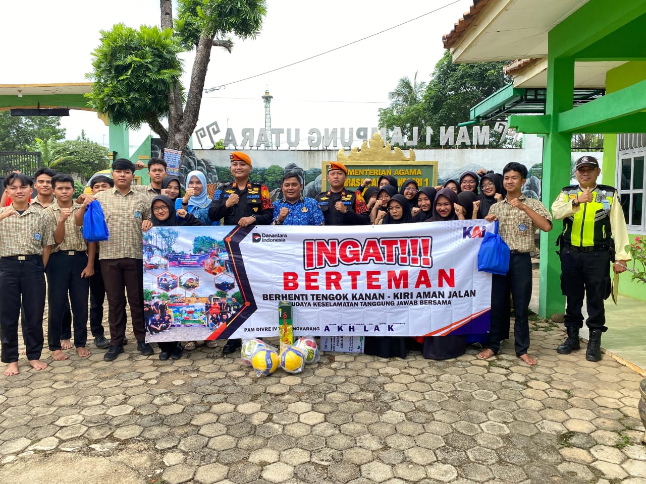 Guna menjaga keselamatan bagi warga madrasah pihak PT Kereta Api melakukan Sosialisasi tentang Perkeretaapian kepada siswa MAN 1 Lampung Utara di gedung perpustakaan madrasah, Rabu (17/09/2025).