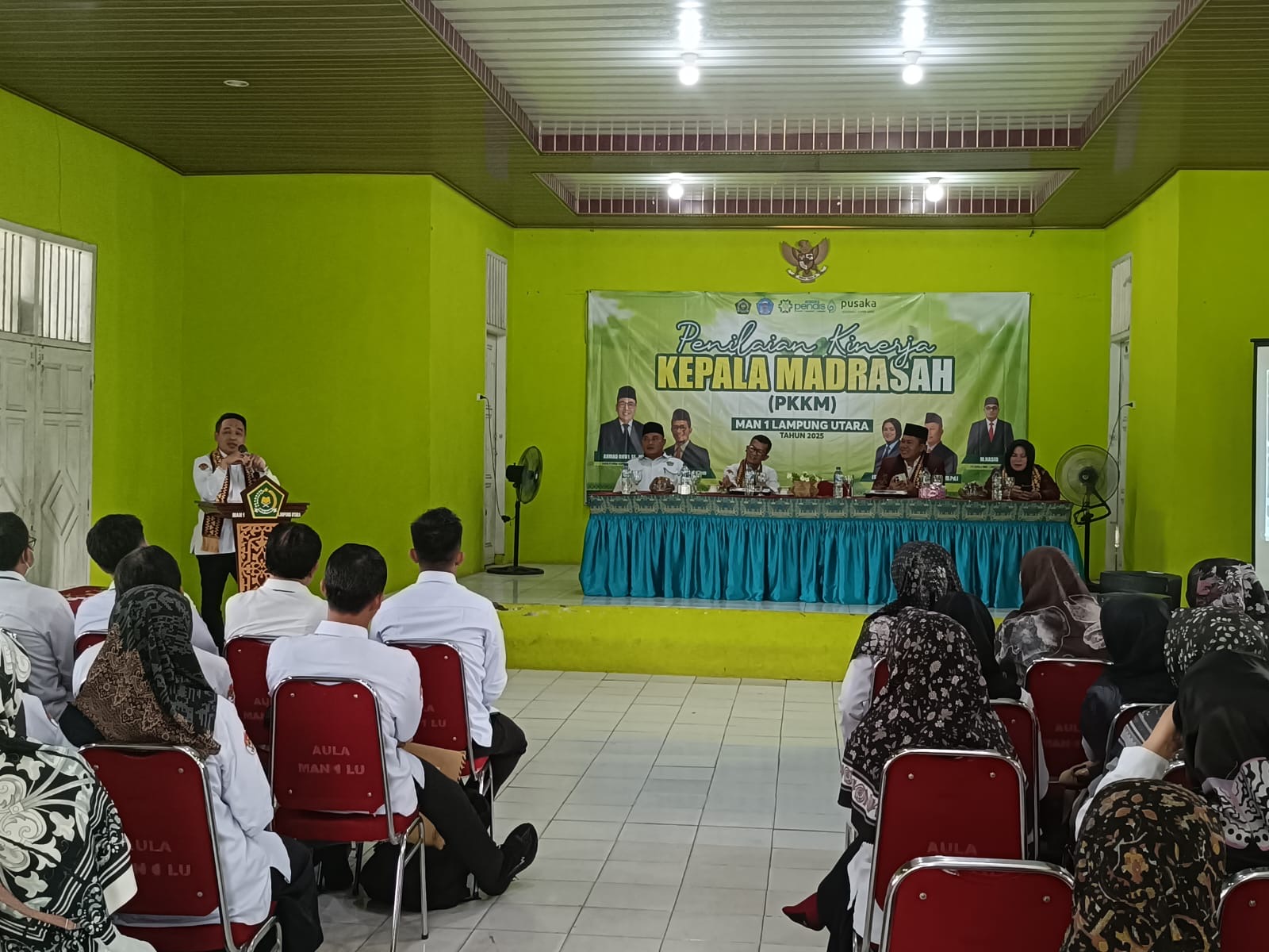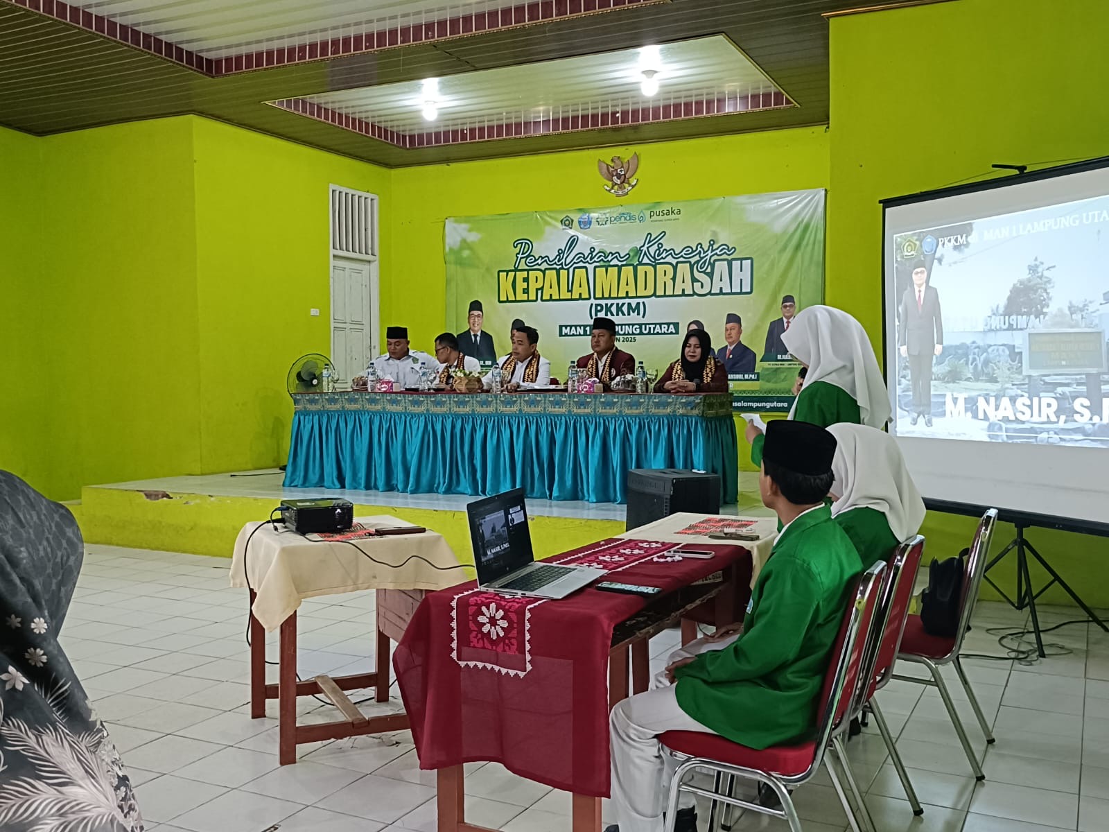 Penilaian dilakukan langsung oleh Kantor Kementerian Agama Provinsi Lampung bersama Tim yang di ketuai Kabid Penmad Ahmad Rifa’i, SE., MM., didampingi Yan Khoirul, S.Kom, dan Tim Asesor Isnaini, M.Pd.I., dan H.Yusuf Ansori, M.Pd.I. DiKehadiran dua pengawas madrasah turut memperkuat pelaksanaan PKKM sebagai tim penilai resmi. Agenda ini juga diikuti oleh jajaran pimpinan MAN 1 Lampung Utara, Kepala Tata Usaha, serta tim penyusun dokumen PKKM.