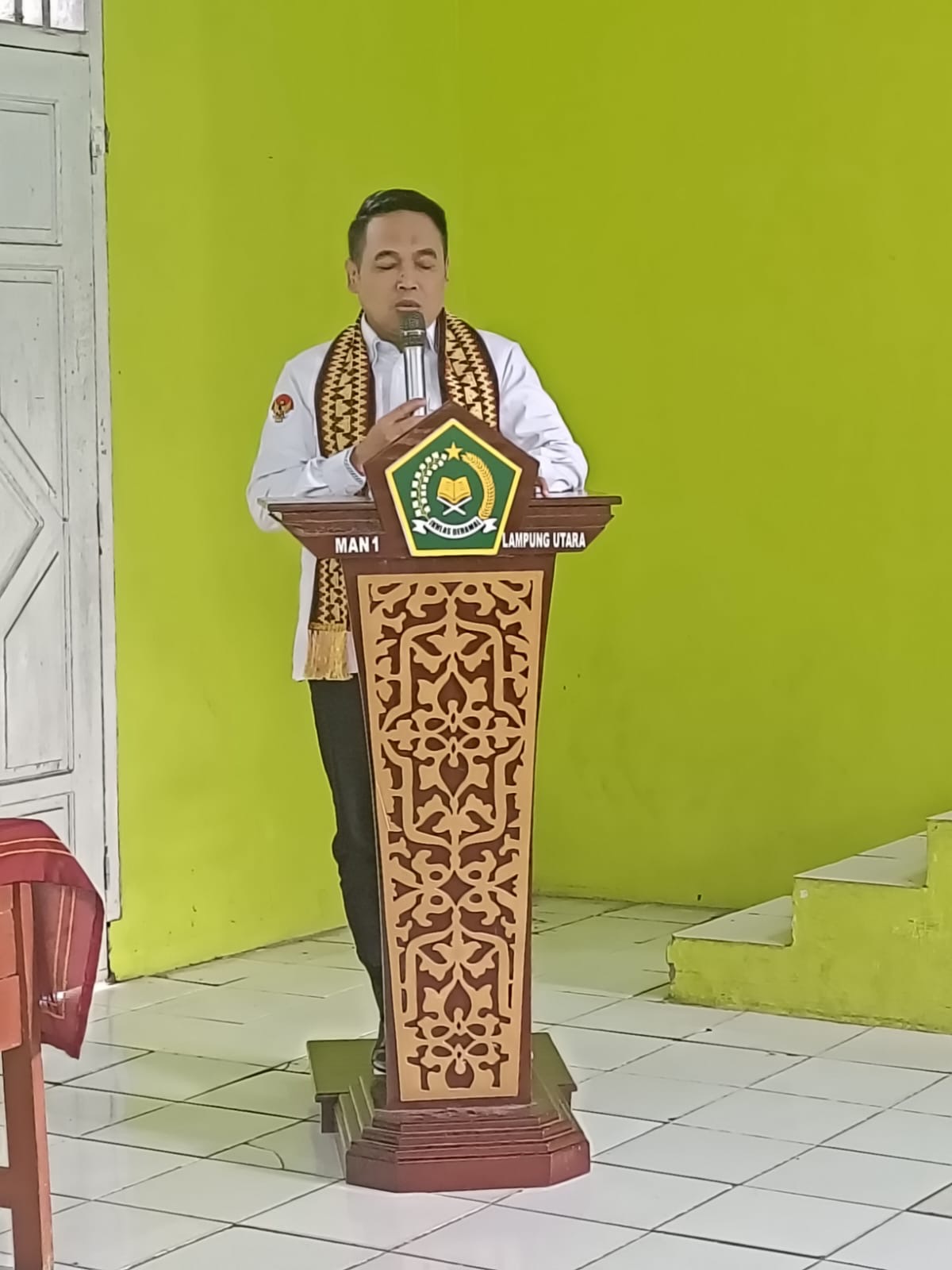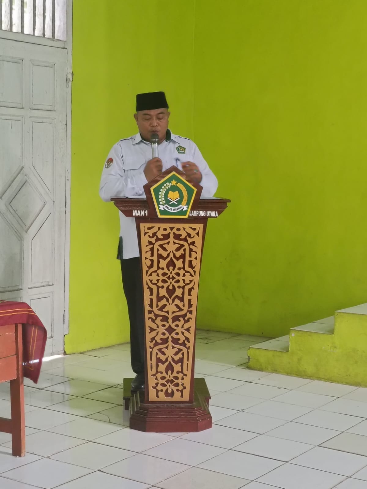 akhir kata beliau berpantun “pergi ke taman memetik melati, (asiikk) tak lupa singgah menanam jambu, kepala madrasah memimpin madrasah menjadi madrasah maju dan bermutu”