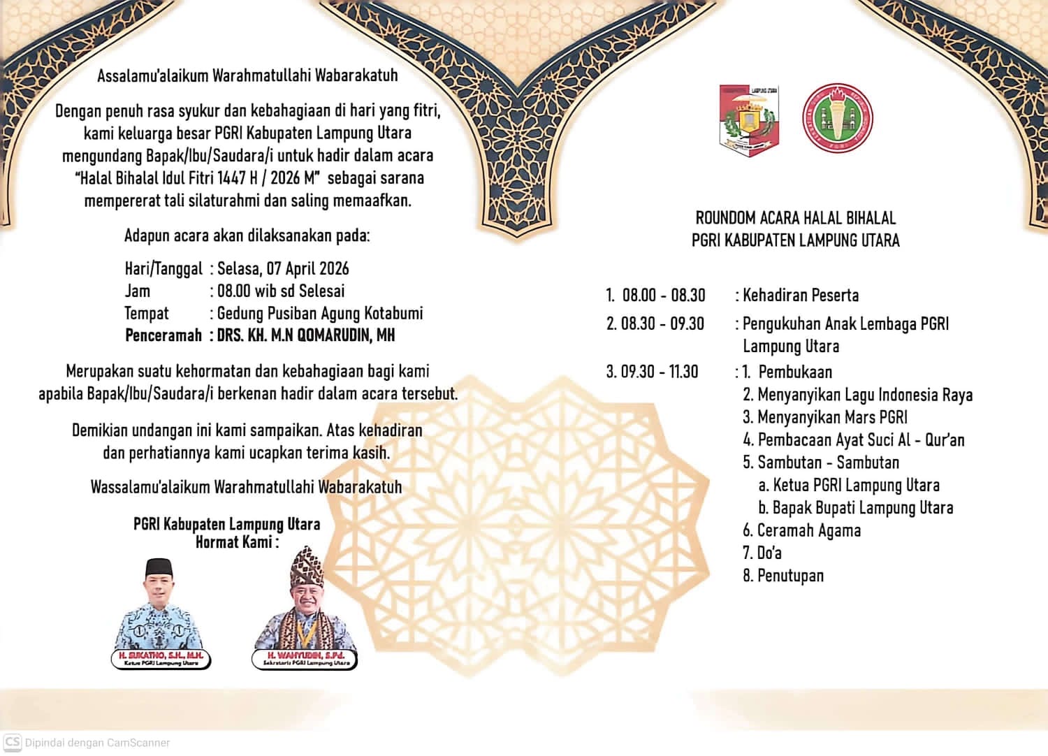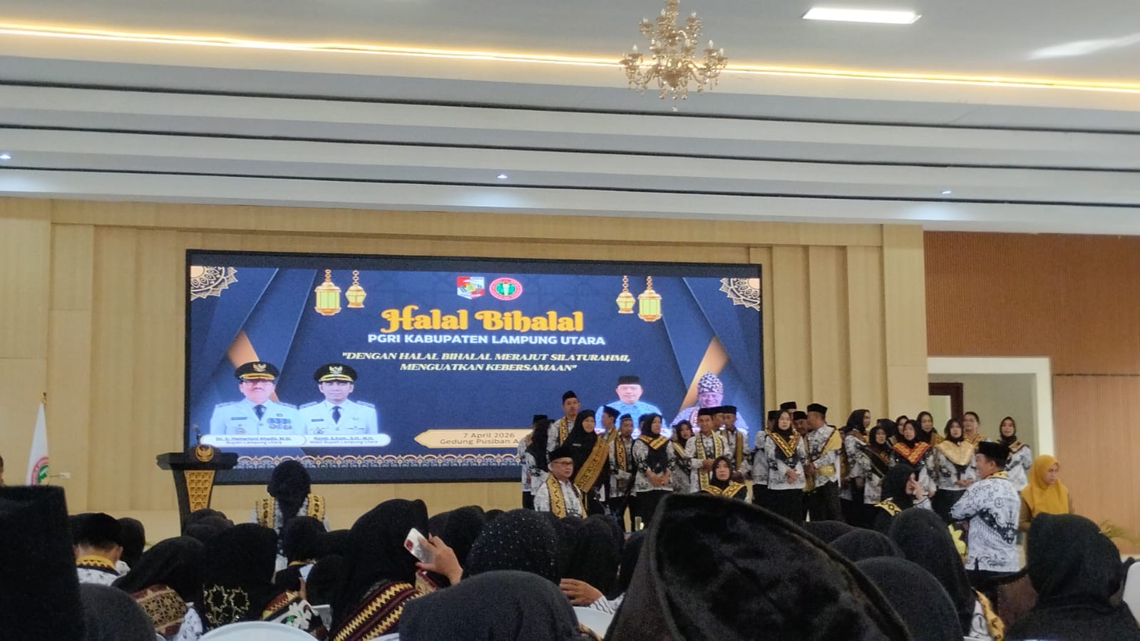 Lampung Utara (Humas)- Plt Kepala Madrasah Aliyah Negeri (MAN) 1 Lampung Utara menghadiri kegiatan Syawalan dan Halal Bihalal Idul Fitri 1447 H yang diselenggarakan oleh keluarga besar PGRI Lampung Utara di gedung Pusiban Agung Kotabumi, Selasa (07/04/2026). Kegiatan tersebut dihadiri oleh para kepala madrasah, guru (TK/RA, MTs,SMA/MA) se-Kapanewon Dlingo serta unsur Forkopimkap.