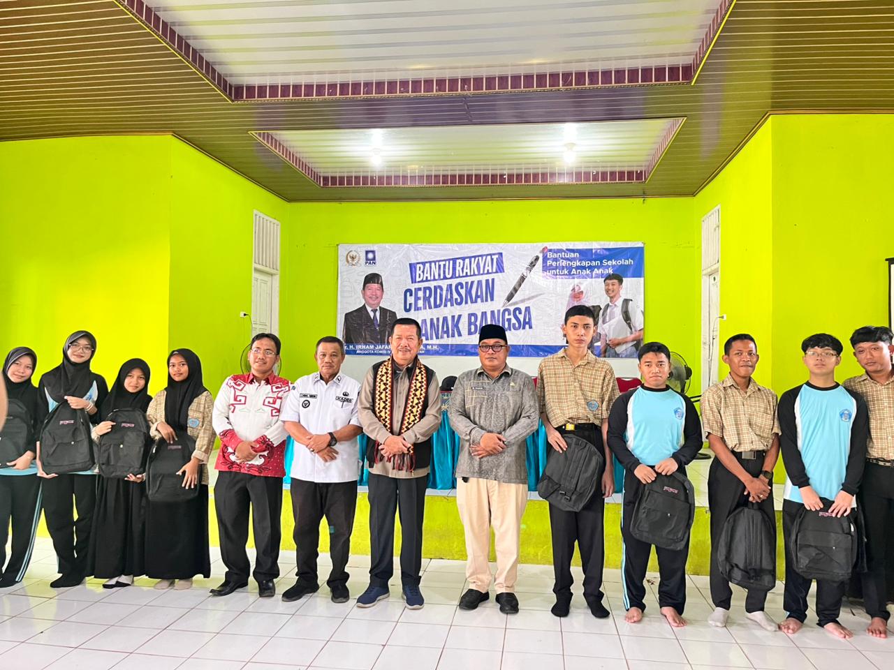 Dalam kegiatan tersebut, H. Irham Jafar menyalurkan berbagai perlengkapan sekolah berupa Tas, dan Alat tulis lengkap untuk seluruh siswa dan siswi MAN 1 Lampung Utara.